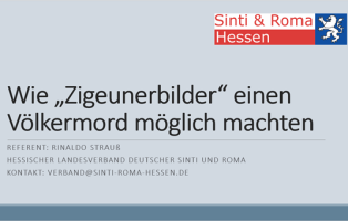 In seinem Vortrag mit dem Titel: „Wie 'Zigeuner'bilder einen Völkermord möglich machten“ befasste sich der stellvertretende Geschäftsführer des Hessischen Landesverbandes Deutscher Sinti und Roma mit der Problematik des „Z“-Wortes als Fremdzuschreibung, sowie der Verfolgung, Vertreibung und Vernichtung seiner Gruppe. Sein eigener Vater und seine Großeltern waren nach Auschwitz deportiert worden, der Vater überlebte. Seine Mutter war in einem Lager bei Frankfurt. Und das sei leider ein typisches Schicksal. Neben den sechs Millionen Juden wurden in der NS-Diktatur circa 500.000 Sinti und Roma ermordet. Doch dieser Teil des Völkermordes wurde jahrzehntelang nicht anerkannt.